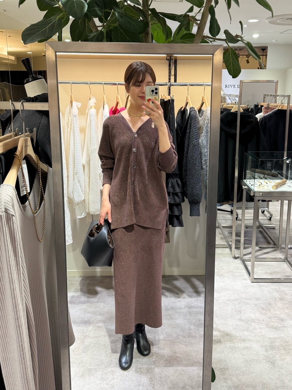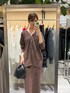 【カーディガン】 前後2wayで着用いただけるカーディガン サイドスリットデザインで腰回りもすっきり見えします 【スカート】 38サイズ 長めの着丈でラインも拾いにくいロングスカート。ニット素材なので足捌きも良く履き心地も抜群です。