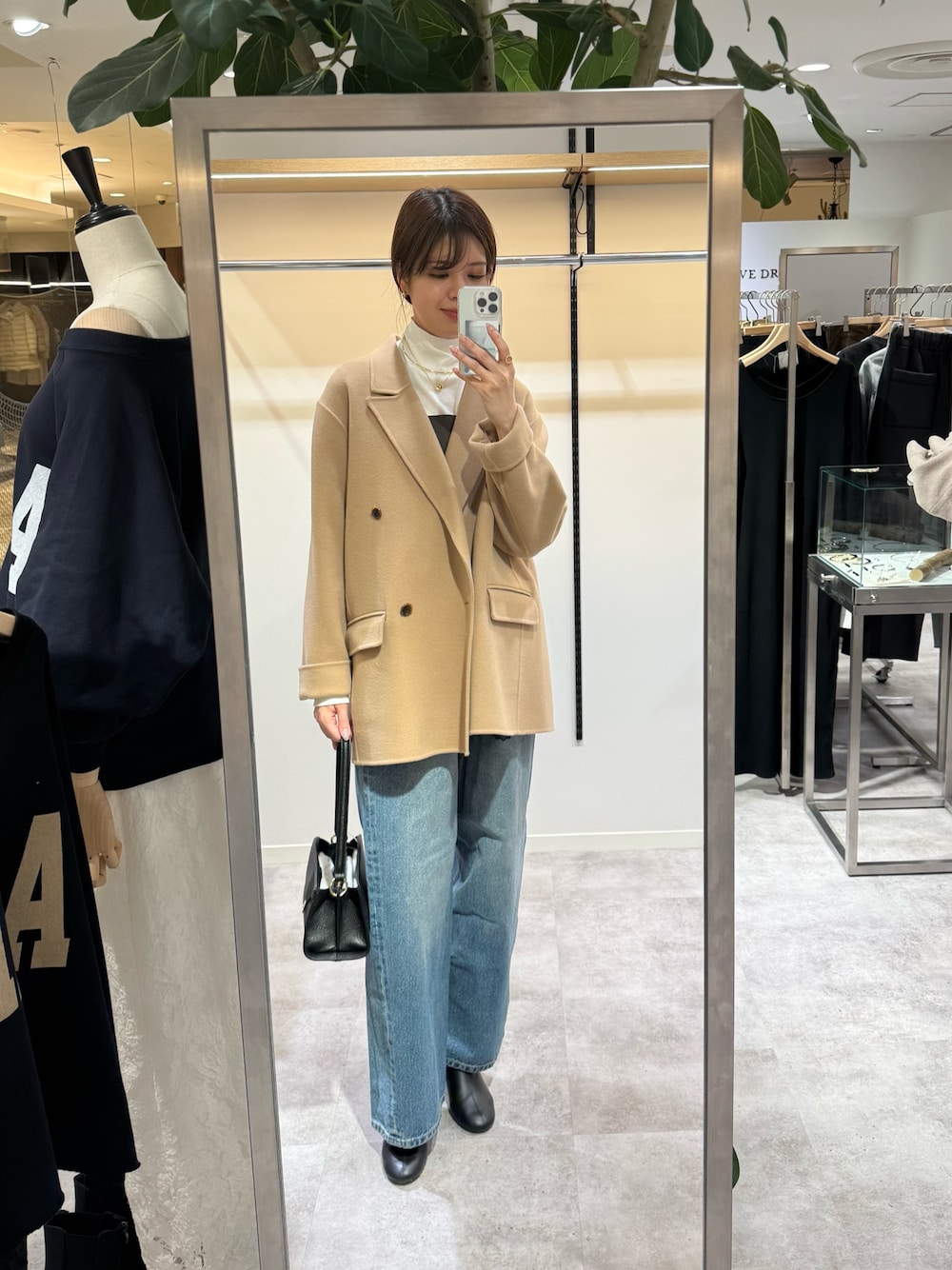 【ジャコット】 とても軽くストレスフリーで着用できるジャケット ゆったりとしたシルエットなので、厚手のインナーも楽々と着用できます 【キャミソール】 トレンドのレースキャミ 肩紐の長さも変えて頂けるので、身長問わずにお召し頂けます 【デニム】 40サイズ 長めの着丈で高身長さんにもおすすめのデニムパンツ 太さがありながらカジュアルになりすぎないシルエットなのできれいめ派さんにもおすすめです。