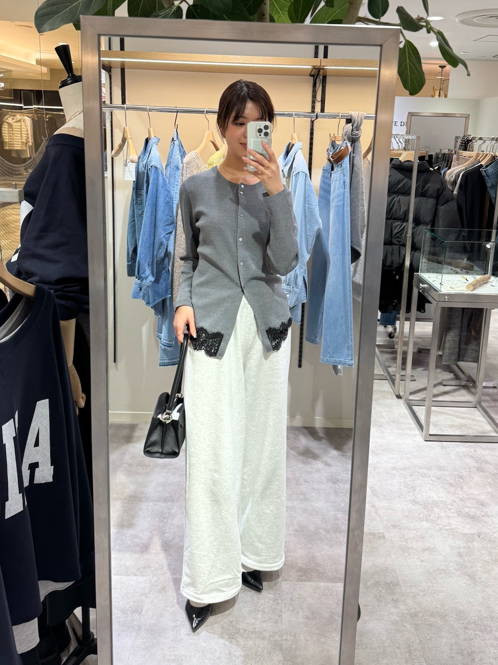 【カーディガン】 長めの着丈で安心感もあるカーディガン ボタンを開けるウエスト位置が高くなるのでスタイルアップして見えます 【パンツ】 38サイズ 長めの着丈で高身長さんにもおすすめのパンツ ウエストゴムで履き心地もとても楽です