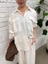 まゆ(RIVE DROITE ルミネ新宿)のシャツ/ブラウス「【セットアップ可/新色追加】ガーメントダイワイドシャツ」を使ったコーディネート