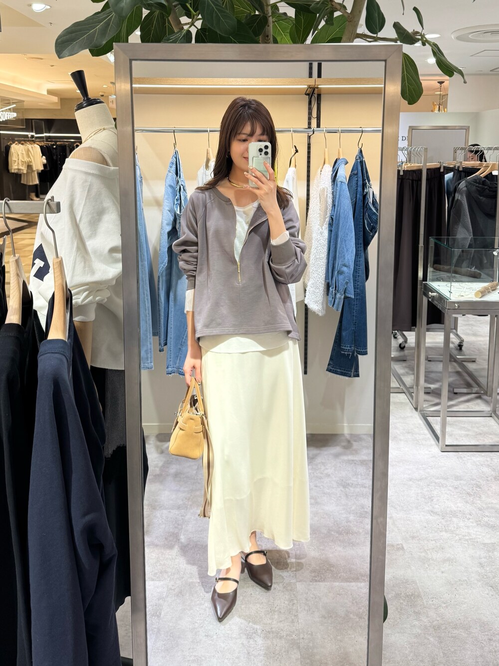 【スウェット】 ZIPデザインで上品見えするスウェットスタイル スウェットですが、品良く決まるので綺麗め派さんにもおすすめです。 【スカート】 38サイズ ウエストゴムで穿き心地も良いスカート キュプラ混の素材なので、光沢感も素敵な1枚 腰はりの私でもすっきりと着用できました