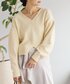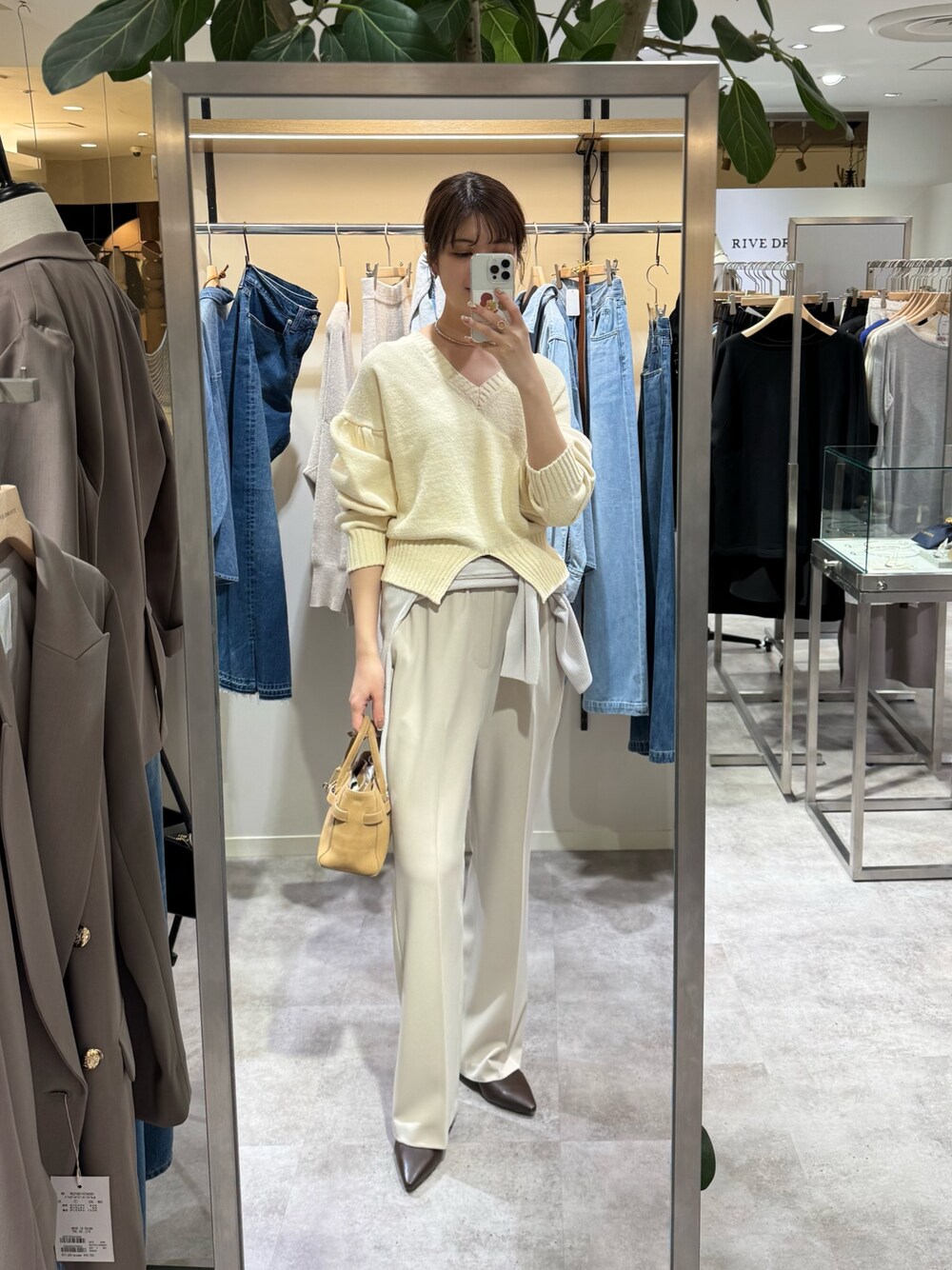 【ニット】 Vネックデザインで顔まわりもすっきり見えするニット 柔らかな生地感で着心地も抜群です 【パンツ】 40サイズ 脚長効果抜群のパンツスタイル ウエストゴムで穿き心地も抜群です