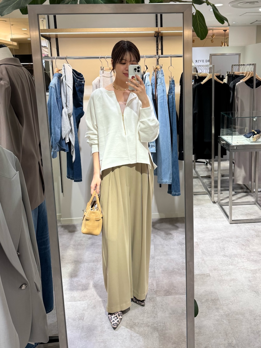 まゆ(RIVE DROITE ルミネ新宿)のスウェット「【新色追加/抜け感◎】ハーフZIPスウェット」を使ったコーディネート