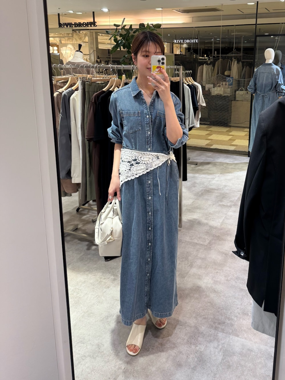 まゆ(RIVE DROITE ルミネ新宿)のワンピース「【Yossshiiii企画】【A・MONN(アモン)】デニムシャツマルチワンピース」を使ったコーディネート