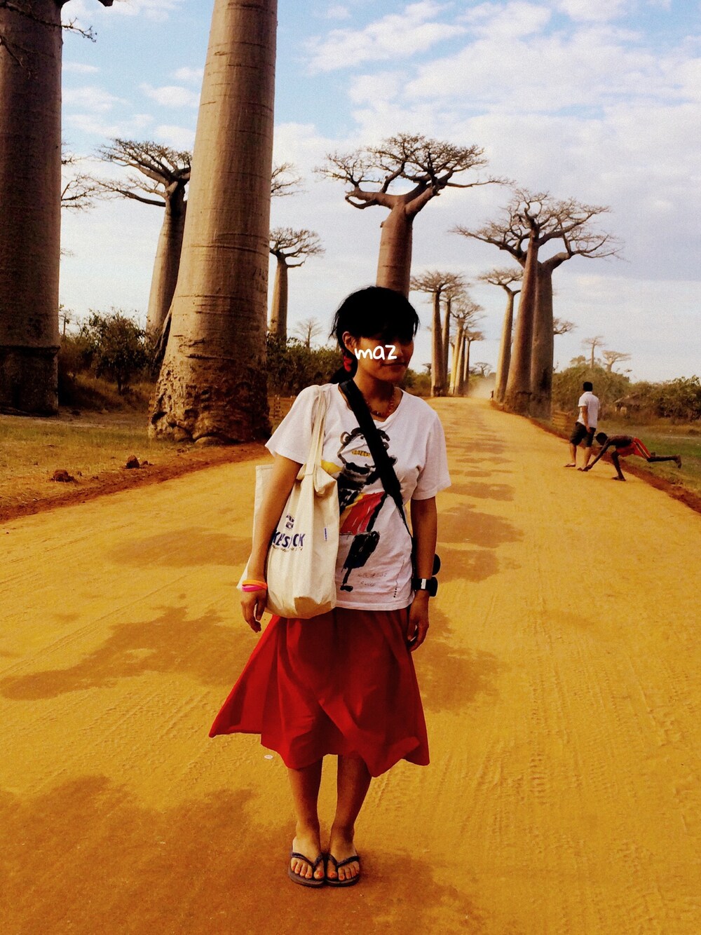 マダガスカル、バオバブの木をみた日 マダガスカルは猿とバオバブがわさわさしてた。 星の王子さまで気になってた木です Tshirt / MARNI skirt / bulle de savon sandals / havaianas shushu / american apparel bag / BIRKEN STOCK まるに お猿T 最近のお気に入り。 きたなくなってもすぐ洗えるからビーサンはすごい 砂がすごくって、よごれたけど 楽しかったから良し。 仲良くなった5歳のイケメンが欲しいっていうから、記念にお気に入りだったけどロンドン五輪のカラーバンドをひとつあげました。 英語わからないから意味わかってないと思うけどすごい喜んでくれたからよかった。