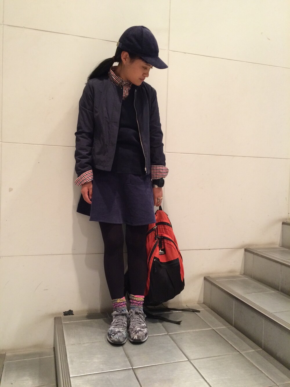 金曜の学校。 オールネイビーにチェックシャツ合わせで シンプルトラッド☺︎ GREGORYのオレンジバックパックと ひとつでくくってキャップの合わせで ダサい感プラス🙌 もっとダサくてもよかったけどな〜 ダサい要素だいすきです コーデュロイとか半端丈とか サスペンダーでハイウエストとか だいすきです。