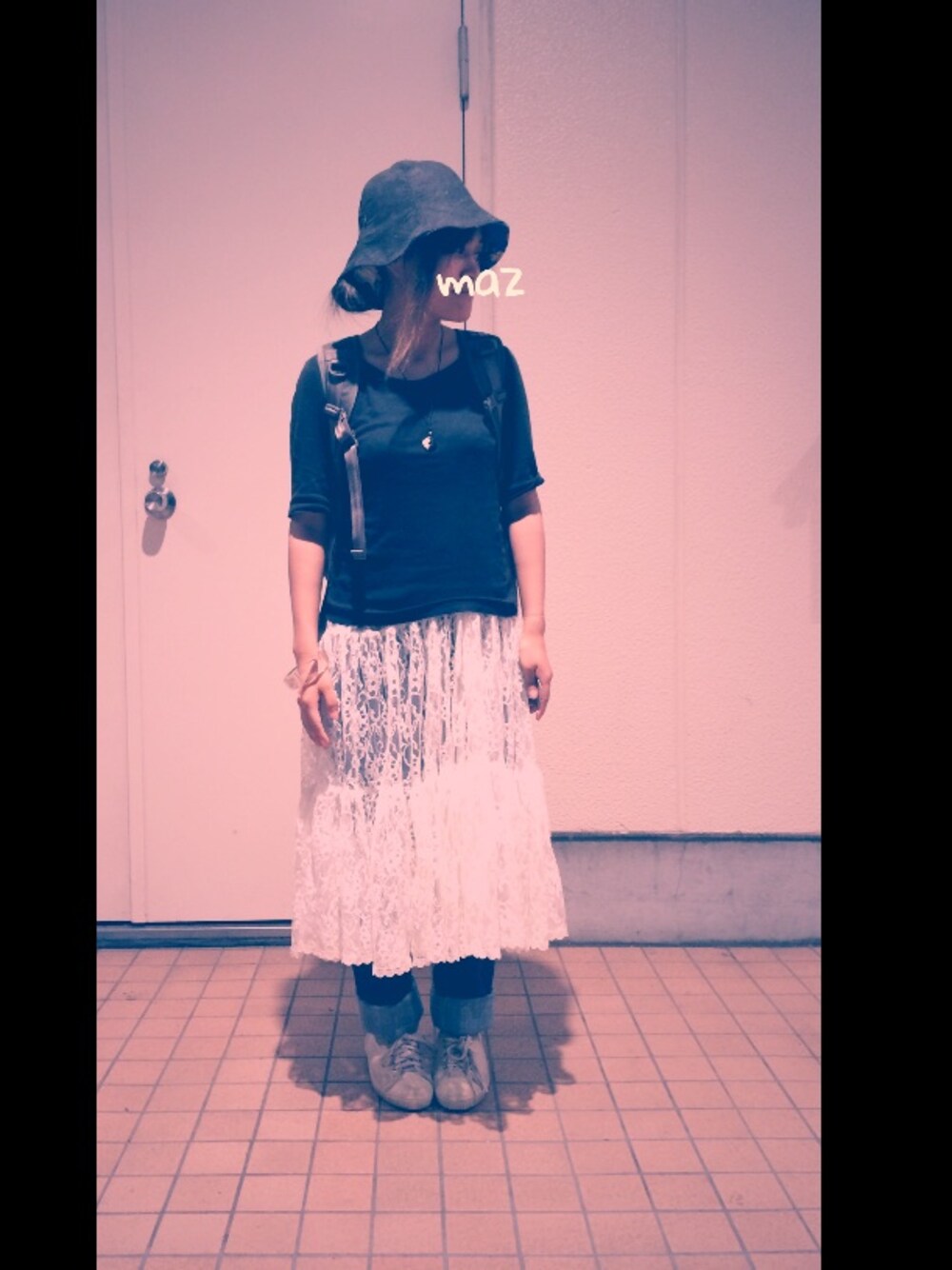 アシからの夜からは恵比寿にてmtg day 。 Tshirt / UNIQLO skirt / The virgin mary pants / NEW YORK JOE sneakers / used hat / CA4LA back pack / NEW ERA 作品用に買ったすかーとだけど、私物でもつかっちゃいます☺︎ 久々にこういうのはいた。スカートにパンツスタイルすき。 ネックレスはおみやげ⁂ 帽子とバックパック以外今日もふるぎ。