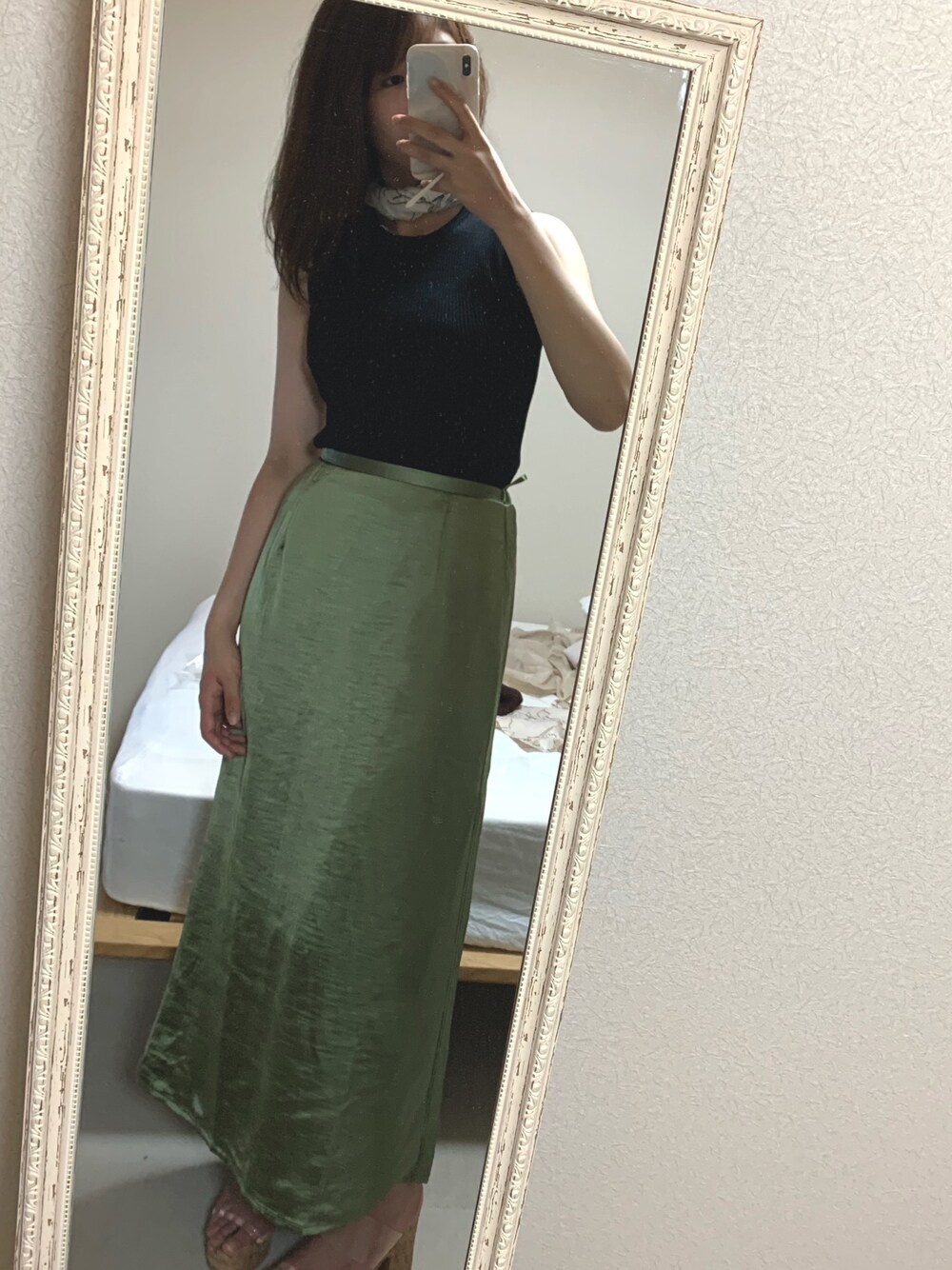 mubachiのスカート「サテンロングスカート」を使ったコーディネート