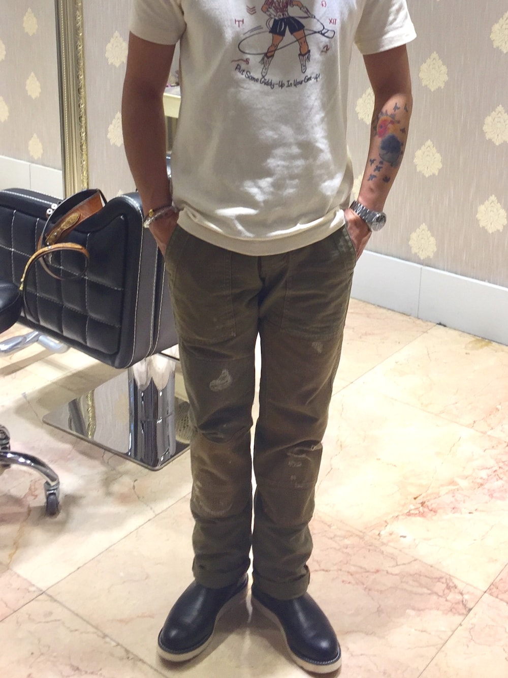 m china のチノパンツを使ったコーディネート