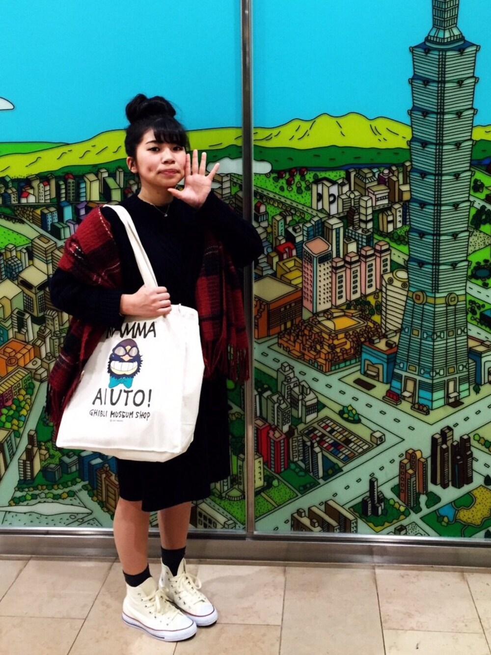 台湾きたでーーい! ニットワンピにゆるーいおだんごにコンバース💕トートバッグもお気に入り〜💕
