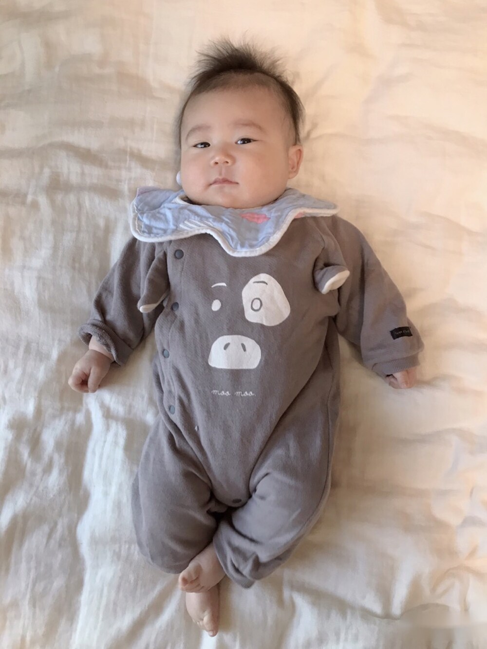 🎍あけましておめでとうございます🎍 バースデーのtete a tete 気づかず買ったら牛柄だったwww よだれかけは寝かせても顔にかからないし、抱っこ紐にも被せられるし柄も可愛いし🙆♀️✨✨