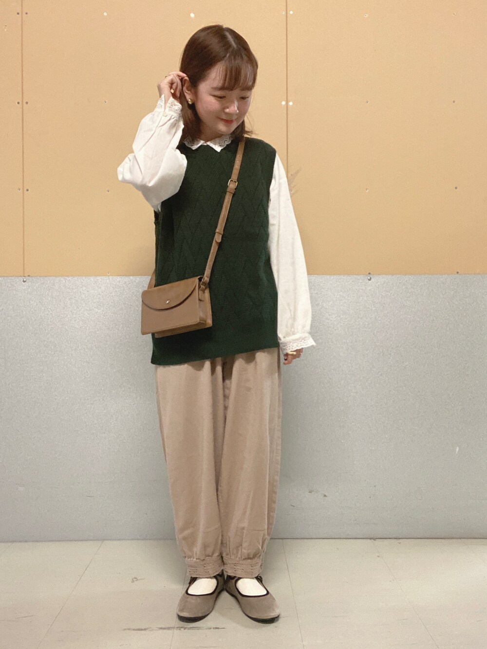 前回のコーデのベストバージョン𓂃 𓈒𓏸 深みのあるグリーンで秋らしさを🍂小物はベージュでまとめました。