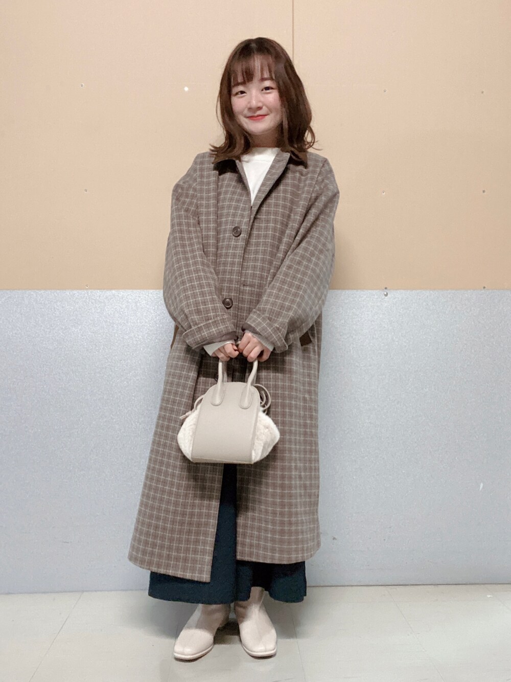 ゆーのショルダーバッグ「ファーコンビ巾着ショルダーバッグ」を使ったコーディネート