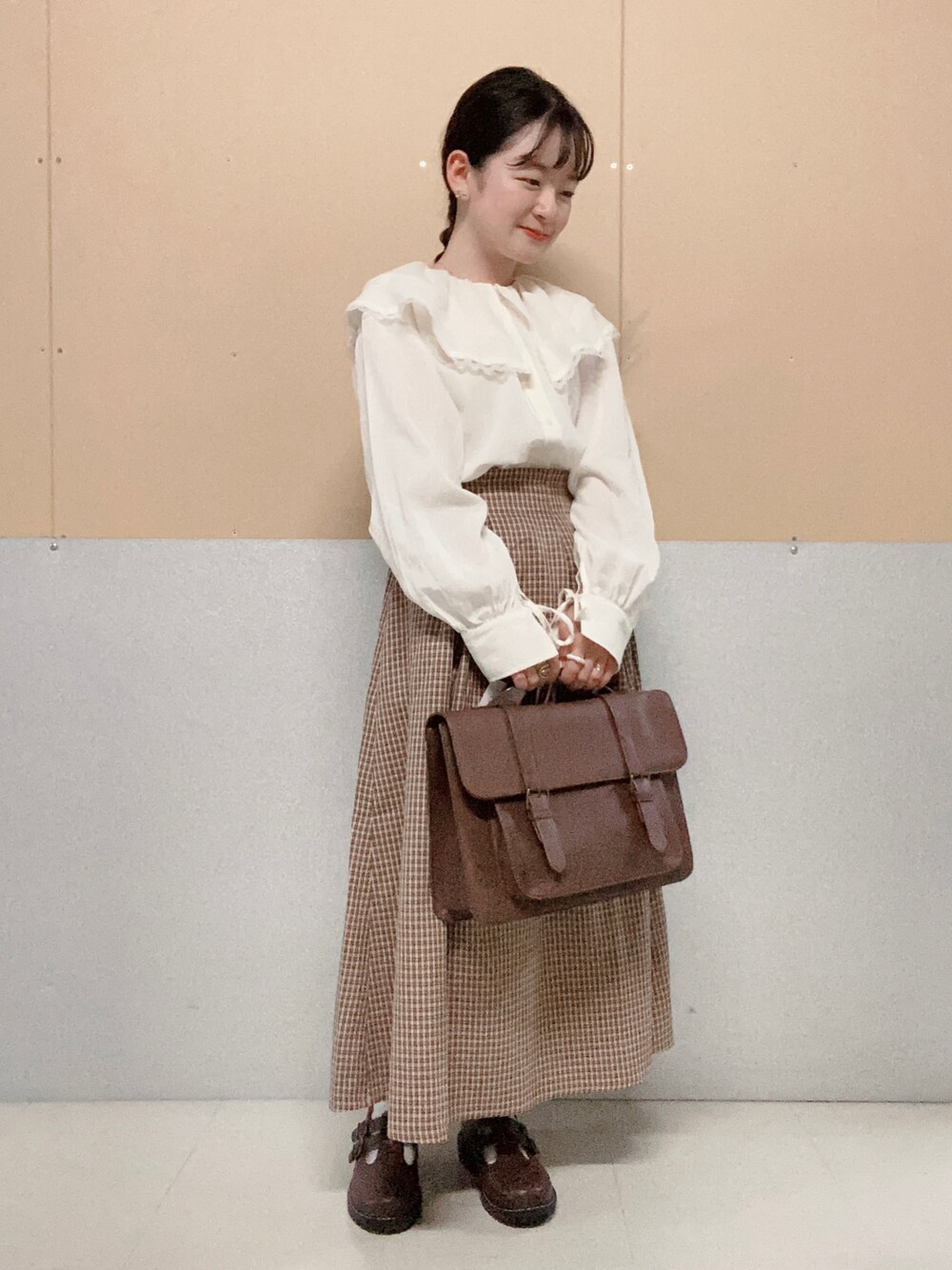 ブラウンコーデ🤎 ブラウスのお袖がリボンになっててかわいい、、