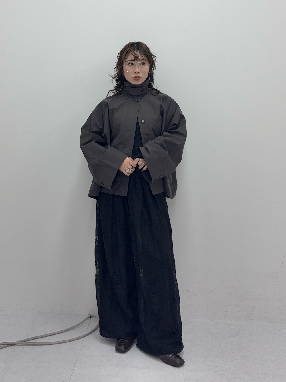 新作のマントコート使ってワントーンコーデを組みました! 広がっているシルエットがお洒落見えするアイテムです! 生地感もしっかりしていて軽くて着やすいので是非店頭でお試しください!