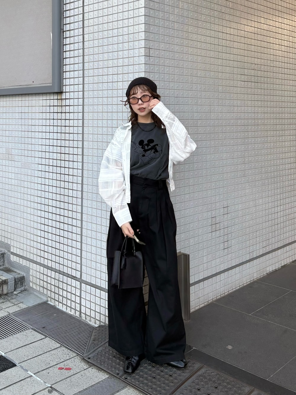 シャツはショート丈で透け感があるので、今の気温だと中にTシャツを着て羽織で使うのがオススメです✨ ワイドパンツとの相性も抜群です🔥