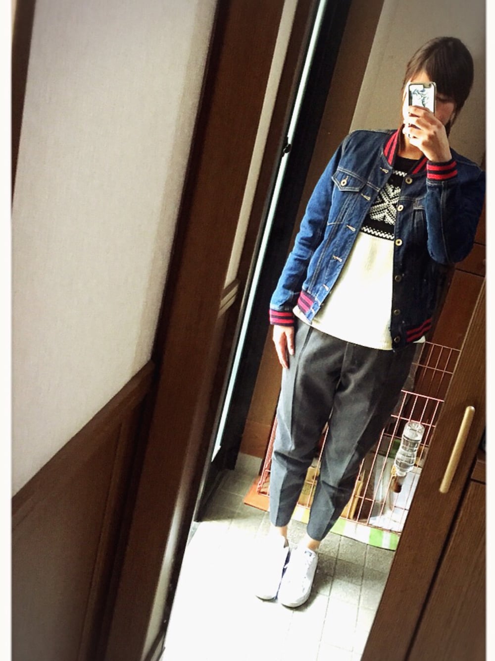 いつも、いいね!saveしていただき ありがとうございます♡ 我が家のインフルも 今のところ娘だけで 済んでいます! どうぞ、移りますせんょ〜に☆ スーパーとTSUTAYAくらいしか 出かけてませんが〜 さすがに1日中パジャマでは いれなくて〜:( ;´꒳`;): いつもの楽チンcoordinate♡ デニムジャケット♡ 赤のラインがお気に入り♡ サルエル風パンツ♡ 合わせやすくて履きやすい♡