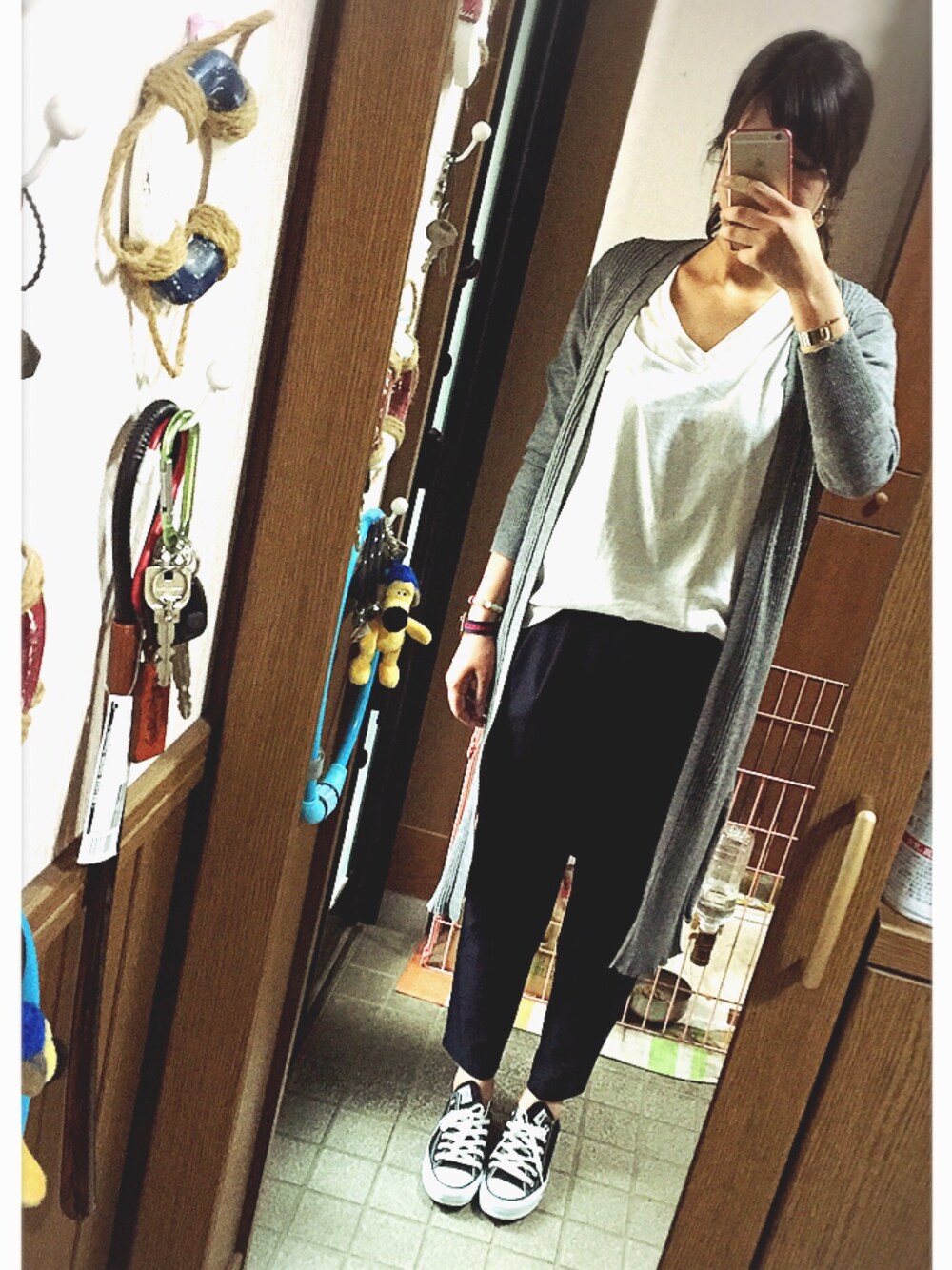いつも、いいね!していただき ありがとうございます♡ こちらもGUcoordinates♡ VネックTee♡ ハイウエストテーパードパンツ♡ ブラックコンバース♡