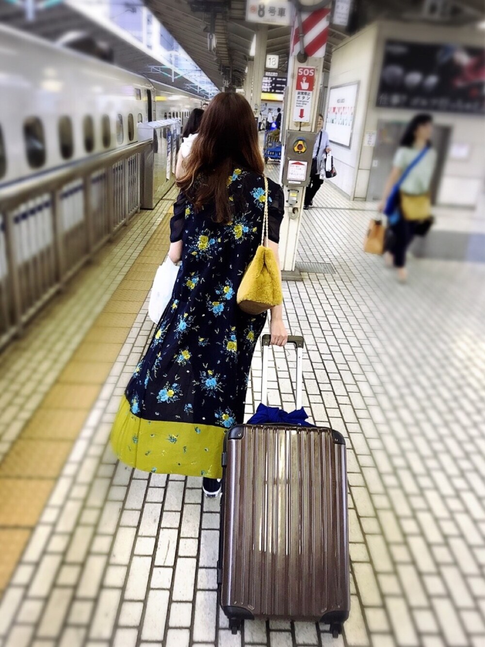 弾丸京都旅行へ行ってきます🚅 @東京駅 2泊3日なのにでかすぎるキャリーバッグ。 中身半分も入ってない😂