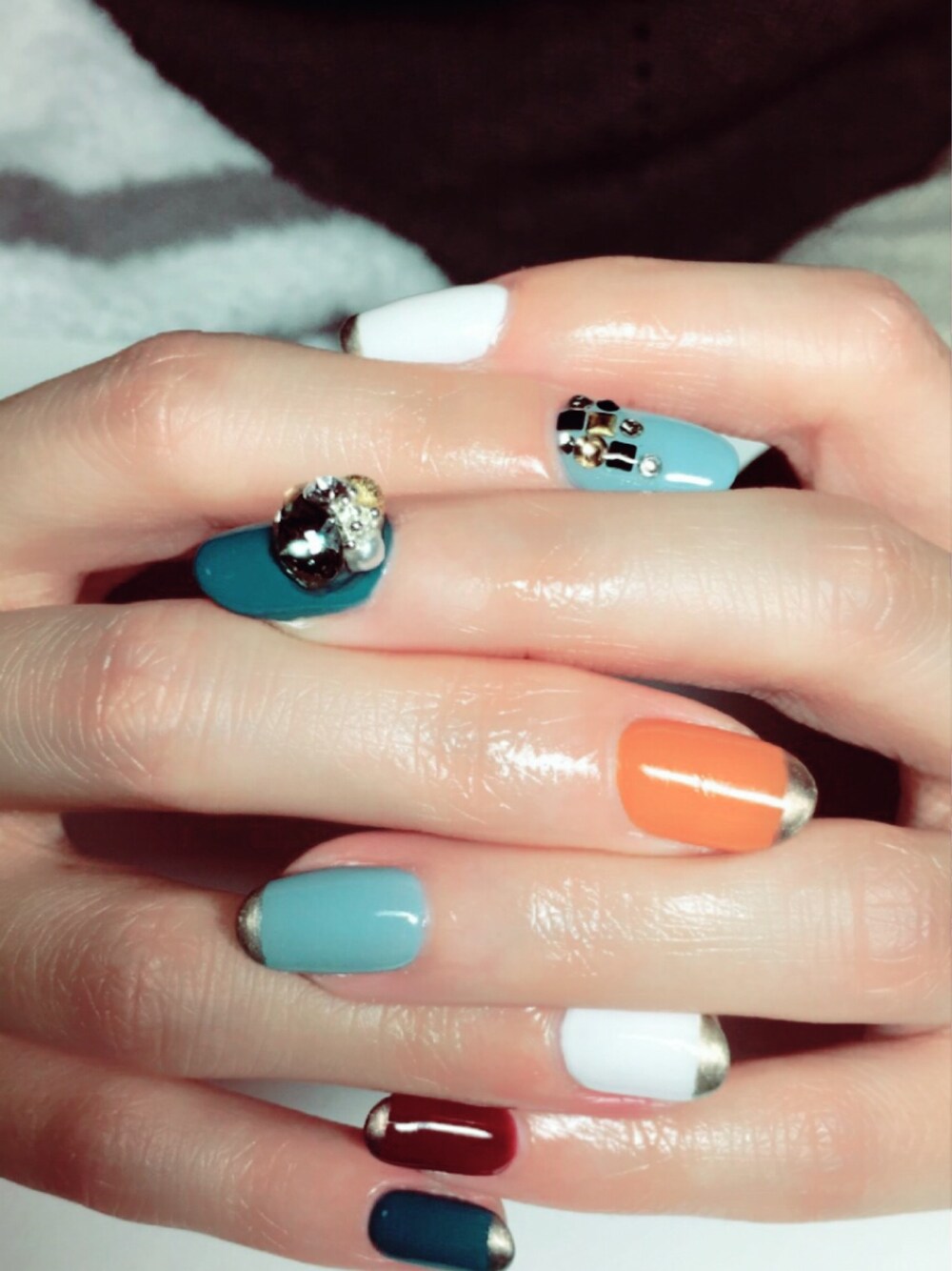 秋冬仕様のマルチカラーに念願の3D💎✨💫 先端はメタリックゴールドでのっぺり感が 出ないように💅