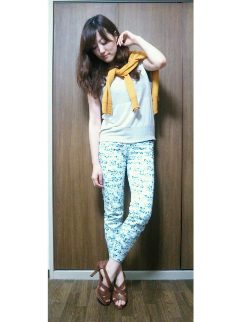 お久しぶりのコーデup☆ ニット→forever21 カーデ→URBAN RESEARCH 花柄パンツ→GU サンダル→ノーブランド
