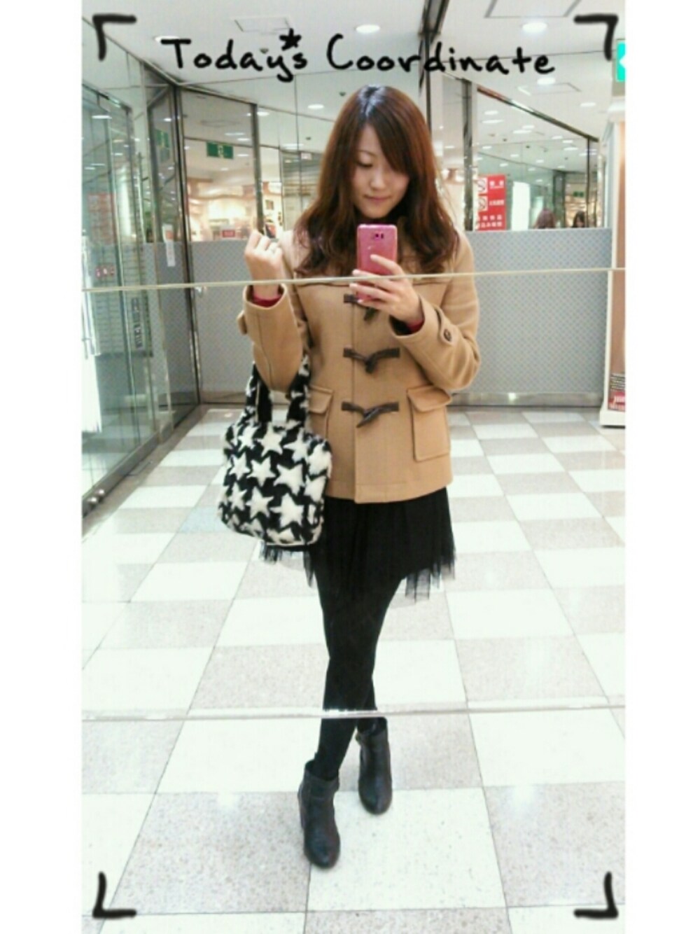 ちょっとお出かけ♪ 最近ヘビロテのGUのチュールスカート♡ 穿きやすくて可愛いからお気に入り(*´▽`*) バッグはモコモコの冬仕様です♡