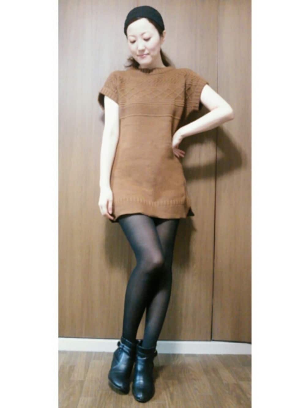 ニットワンピ♡ 半袖だけどニットなので暖かい( ´艸`) 今日はこの上にモッズコートを羽織っています♪