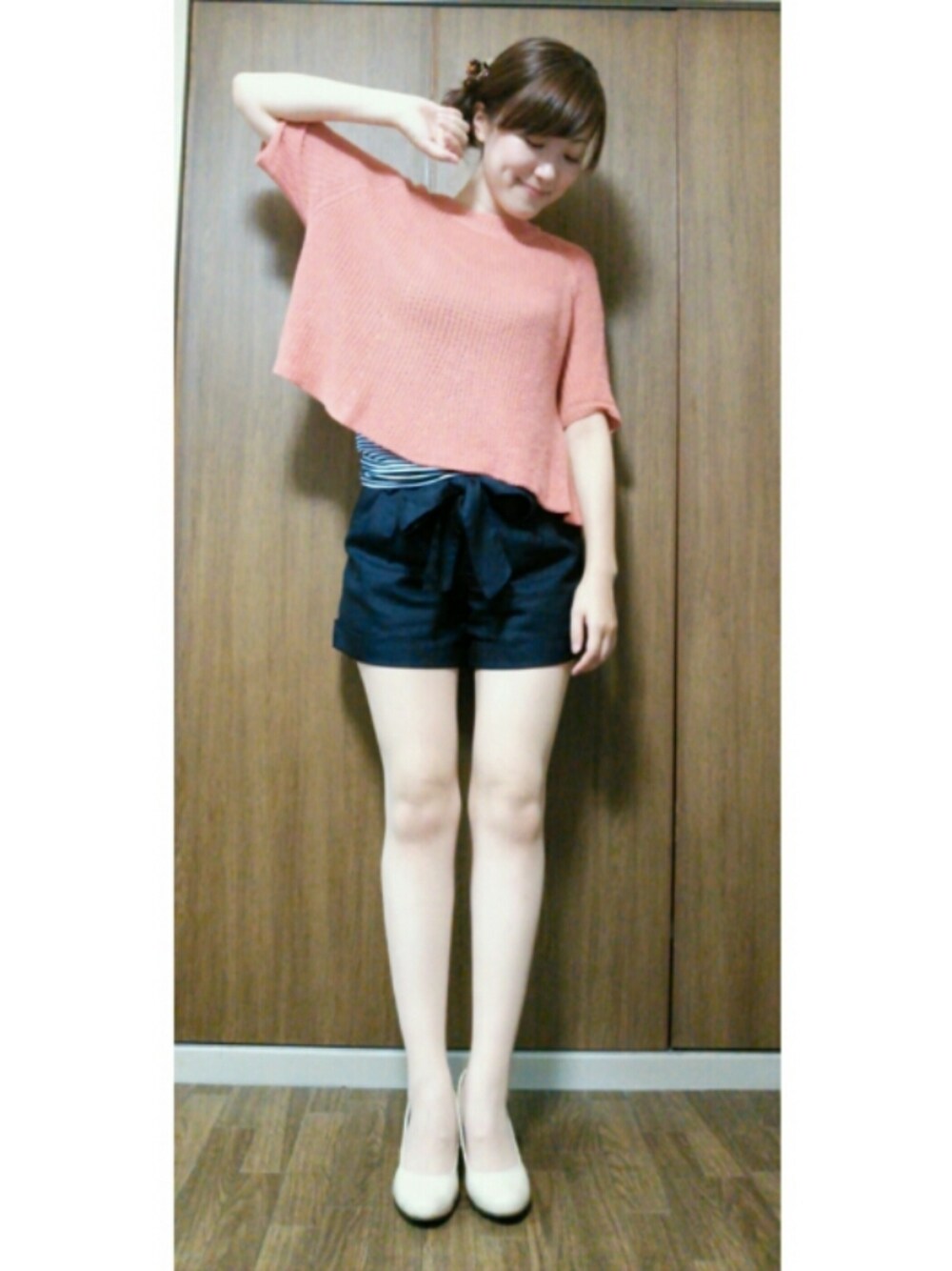 チラッ インのボーダーをチラ見せ( ´艸`) パンツのリボンもポイント☆