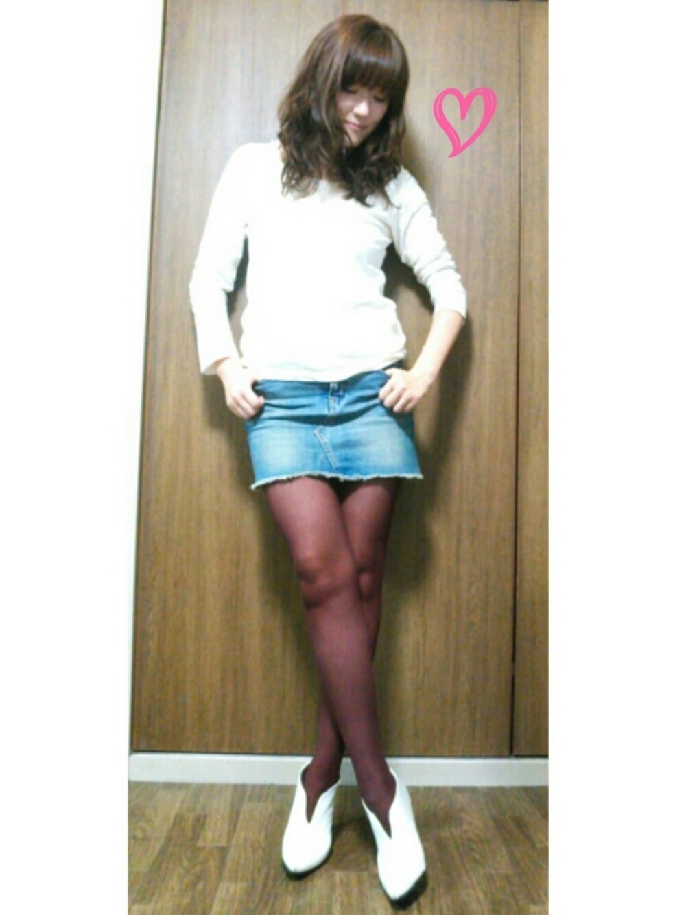 カラータイツ 秋冬は私の中でカラータイツの季節♡ 写真ではわかりづらいですが、模様のあるボルドータイツなのでけっこう存在感あります。 トップスも胸元にレースのカッティングがあるので、写真よりは華やかですよ♪