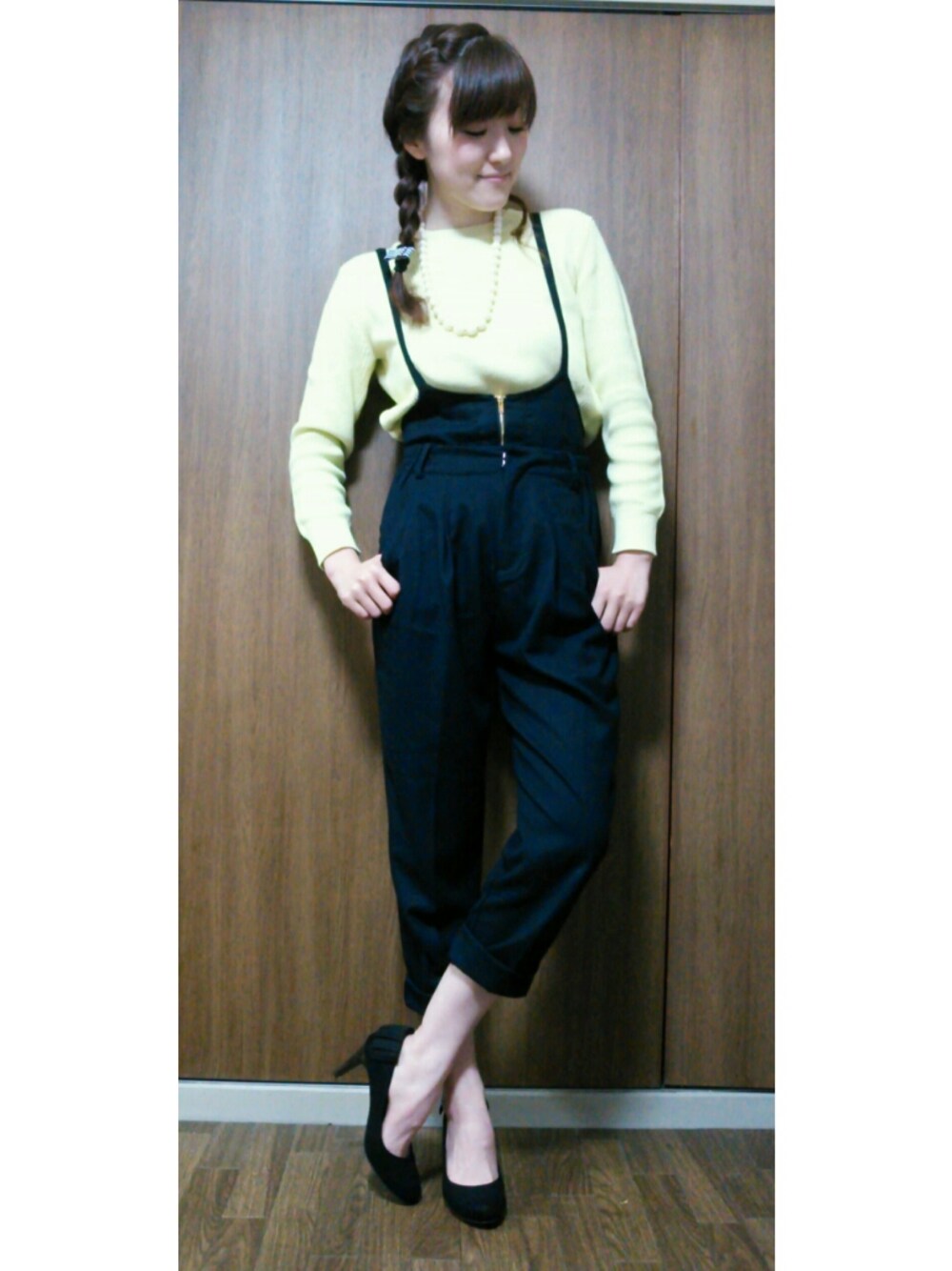 春ニット×サロペット♡ 暖かいのでこれだけで1日過ごせました(*^^*) ニット→GU サロペット→mysty woman パンプス→Oriental Traffic ネックレス→不明