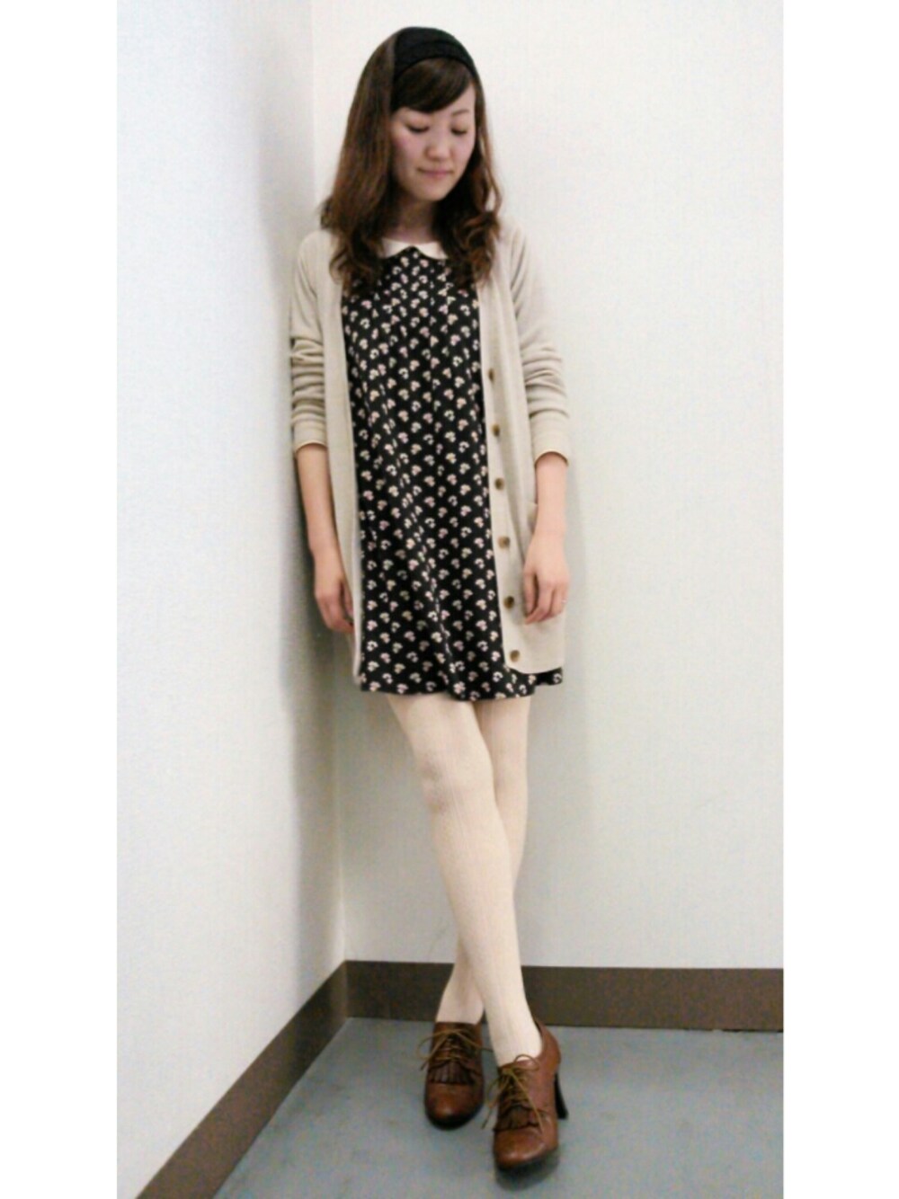 レトロガール☆ ワンピース→ユニクロ×Orla Kiely カーデ→GU 靴→ネットで購入 タイツ→forever21 ヘアバンド→3Coins うーん、相変わらずプチプラ(笑)