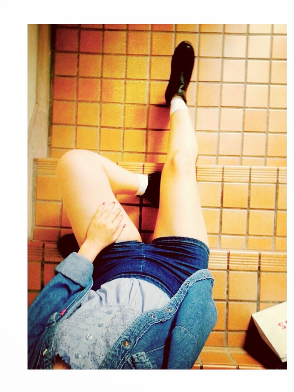 ☁ ♁ today's outfit 👕👖👟 〜〜 ♁ ・👕 camisole ⏩ used ・👕 denim jacket ⏩ levi's ・👖 short pant ⏩ forever 21 ・👟 shoes ⏩ global work