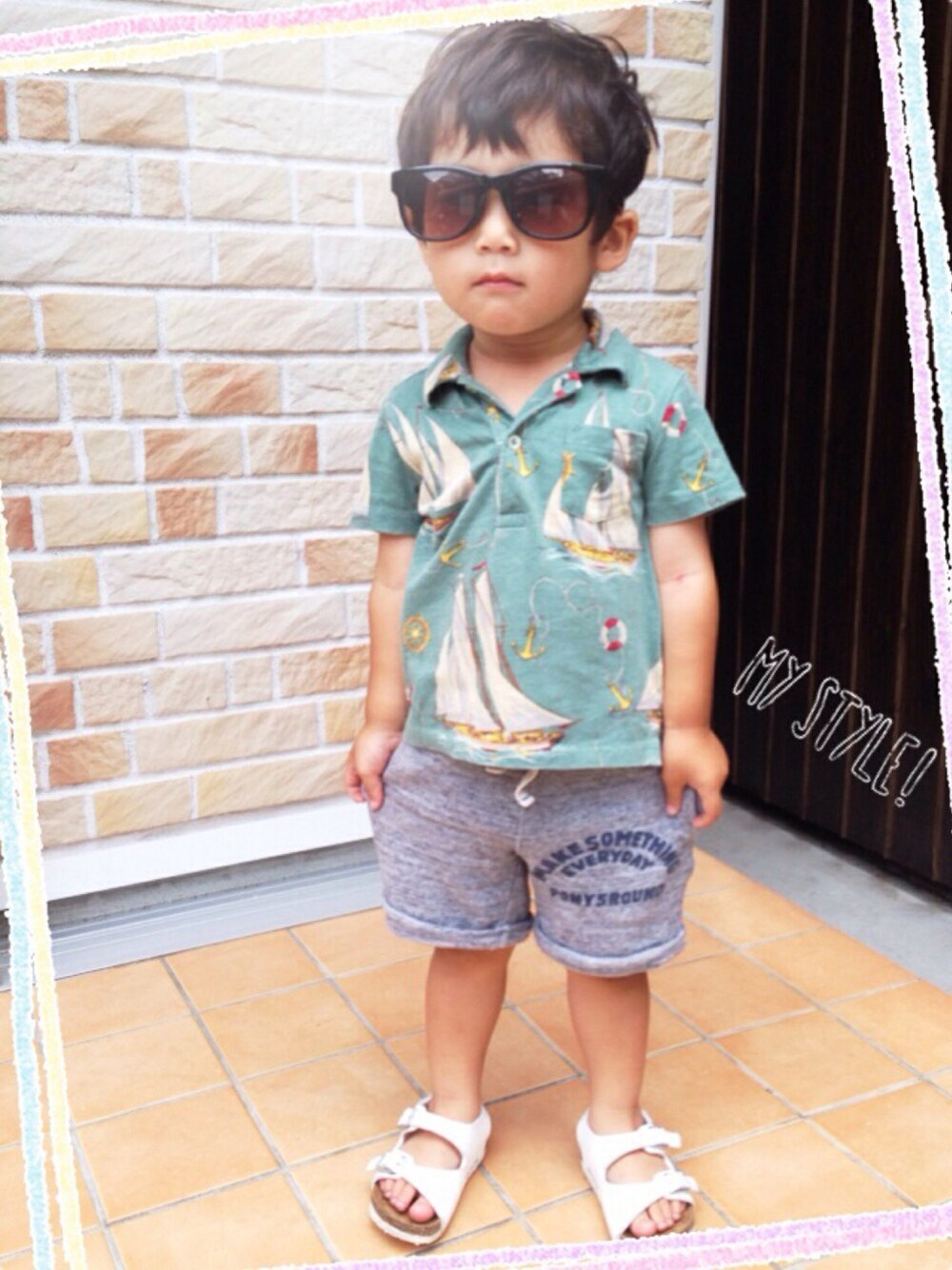 パパのサングラスをお借りして ビーチが似合いそうなコーデに(*´˘`*)♡