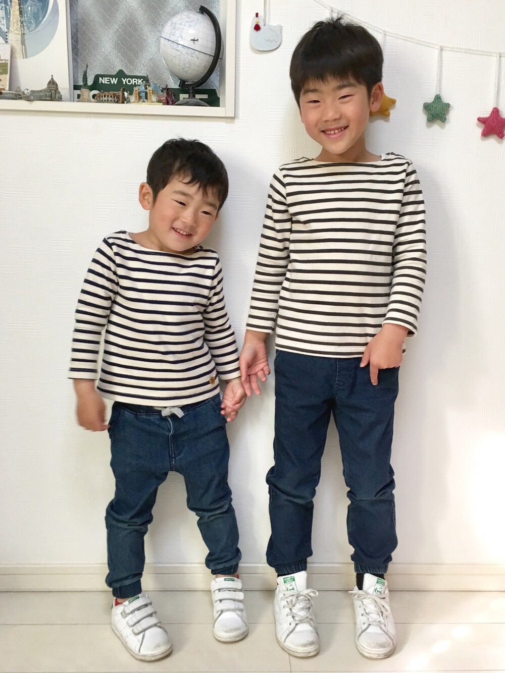 長男&次男コーデ♪ ボーダー × ジョガーデニムパンツ × スタンスミス 兄弟お揃いコーデです(*^^*)v 2人髪切って来ました✂︎ 髪切ってると必ず寝る兄弟です((≧艸≦*)) 長男 ピカピカ1年生になりました🌸 次男 年中に進級しました🌸 三男 3月で2歳になりました🌸 みんなすくすくと成長しています( ´͈ ᗨ `͈ )◞♡⃛ ママもハンドメイドピアス作り 楽しんでいます(๑˃̵ᴗ˂̵)❤︎ 良かったら、インスタ覗いてみて下さいね♡ 1000円以下のプチプラで販売中です♡