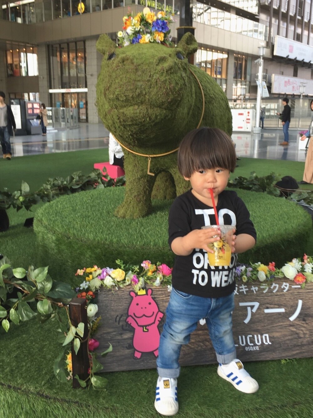 三男コーデ♪ ロゴTシャツ × デニムパンツ ×アディダス このadidasのスニーカーお気に入りです♡ 柔らかくて履かせやすくて、 デニムと合わせるのが可愛い過ぎる(*^^*)♡ 久々に梅田に行ったら、 ルクアの間の時の広場が、 芝生になってて、地べた座りで お茶してたぁ( *^艸^)♡🍹🍦 小窓のハンドメイドピアスも販売中ですので、 良かったらInstagram見て下さいね(•ᵕᴗᵕ•)❤︎