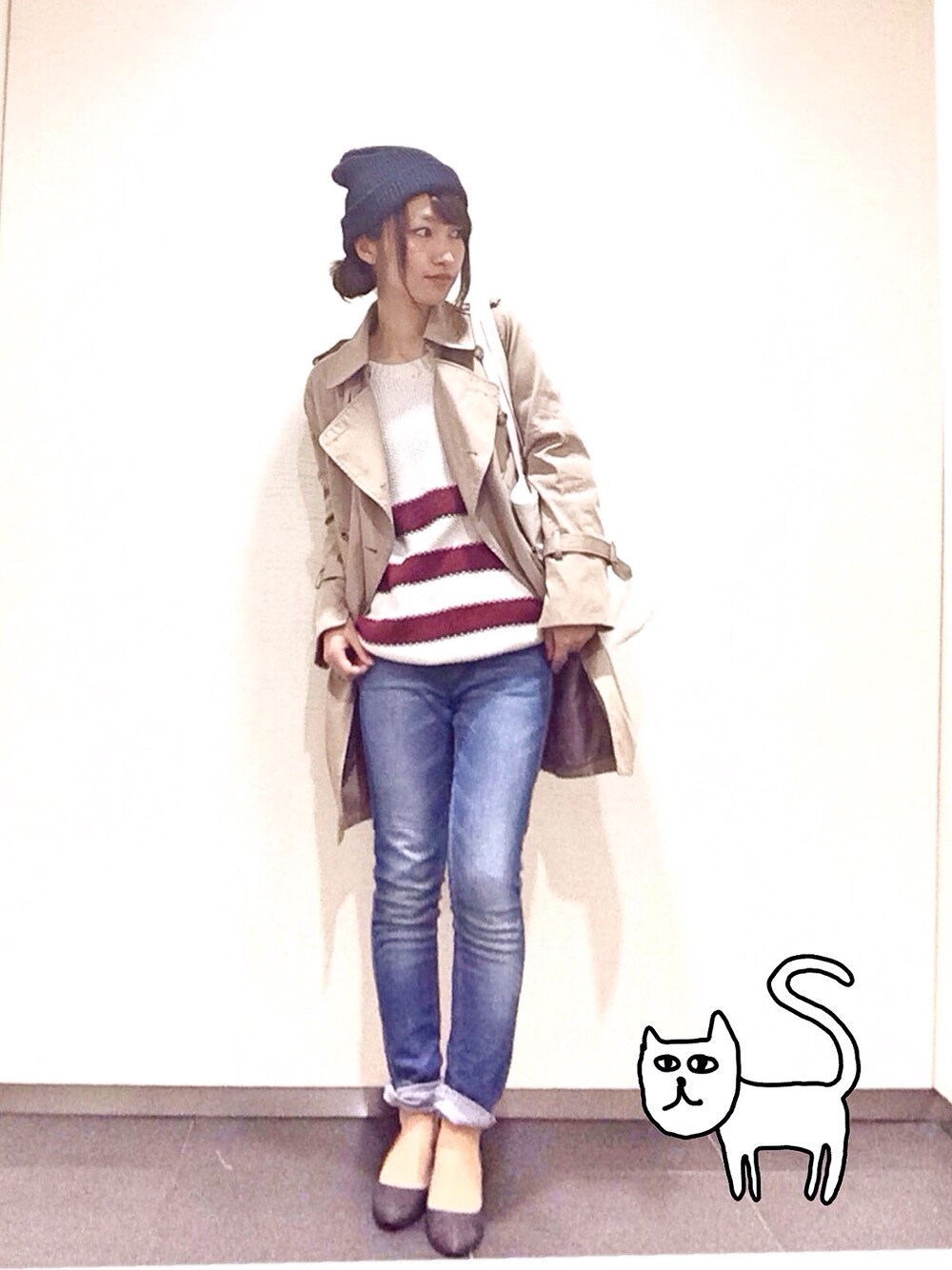 トレンチコートをカチッと着ないで ラクーなスタイル 今ぐらいの寒さに トレンチはちょうどいいですね◡̈⃝♩