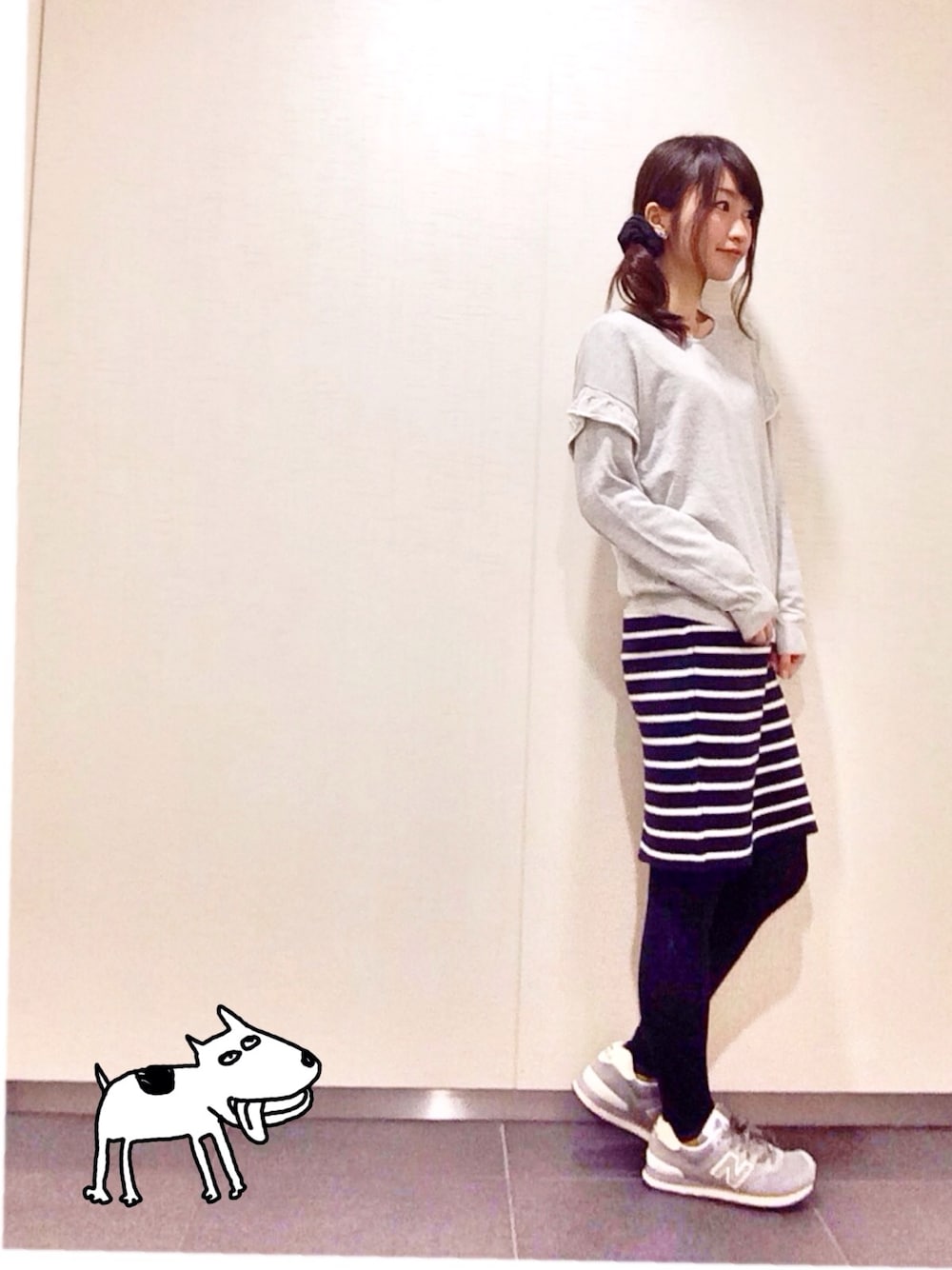 見えてないけれど イヤリングが♡です◡̈⃝ チョコをゲットするため 高島屋開店前に並ぶことを考えて スニーカー! カジュアルすぎないように気をつけました。 バレンタインですからね( ˘ ³˘)♡