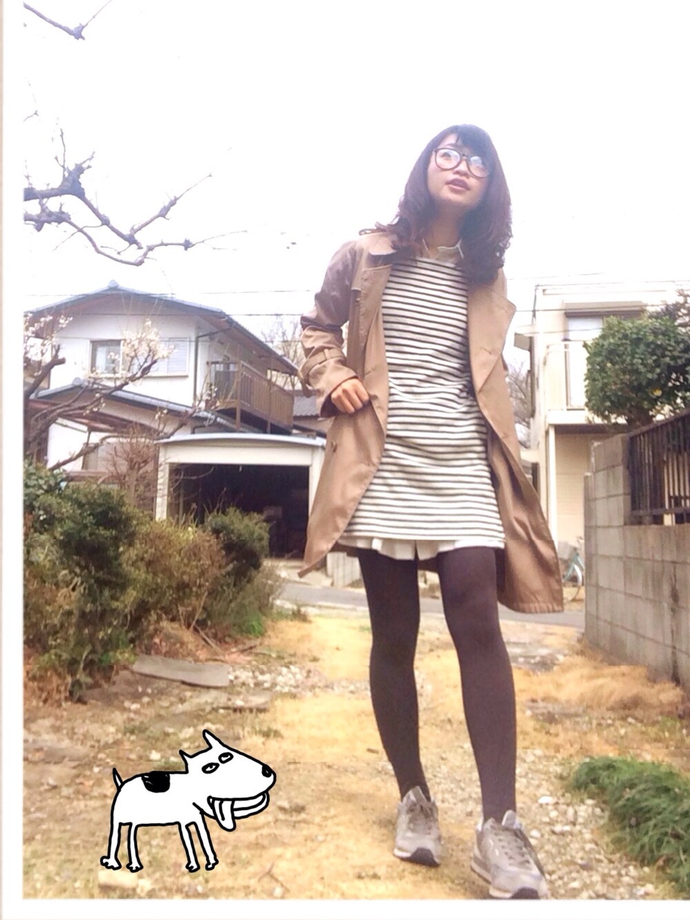 ワンピース二枚重ね。 インナーはキュッとまとめました◡̈⃝♩ メガネ反射(´・ω・`)
