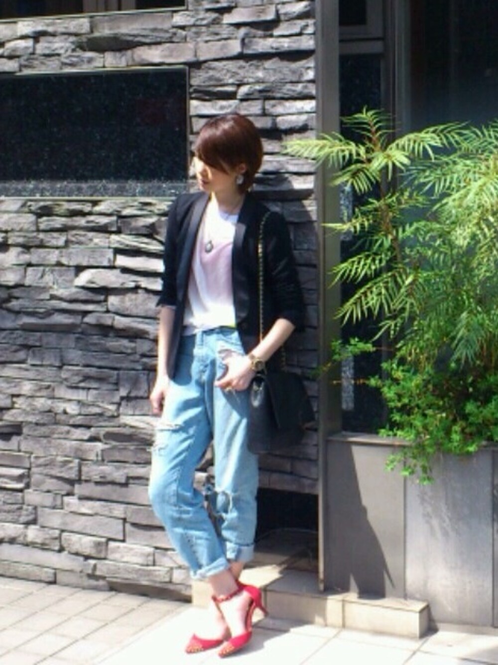ジャケット/zara トップス/american apparel ブラトップ/topshop デニム/ungrid サンダル/zara