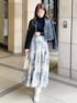 リバーシブルスカートのアイボリーで大人フェミニンなマーキュリーの王道デートコーデ💓💓フレア感がしっかりあるスカートなので、トップスやジャケットはコンパクトなアイテムを合わせるのがおすすめです✨