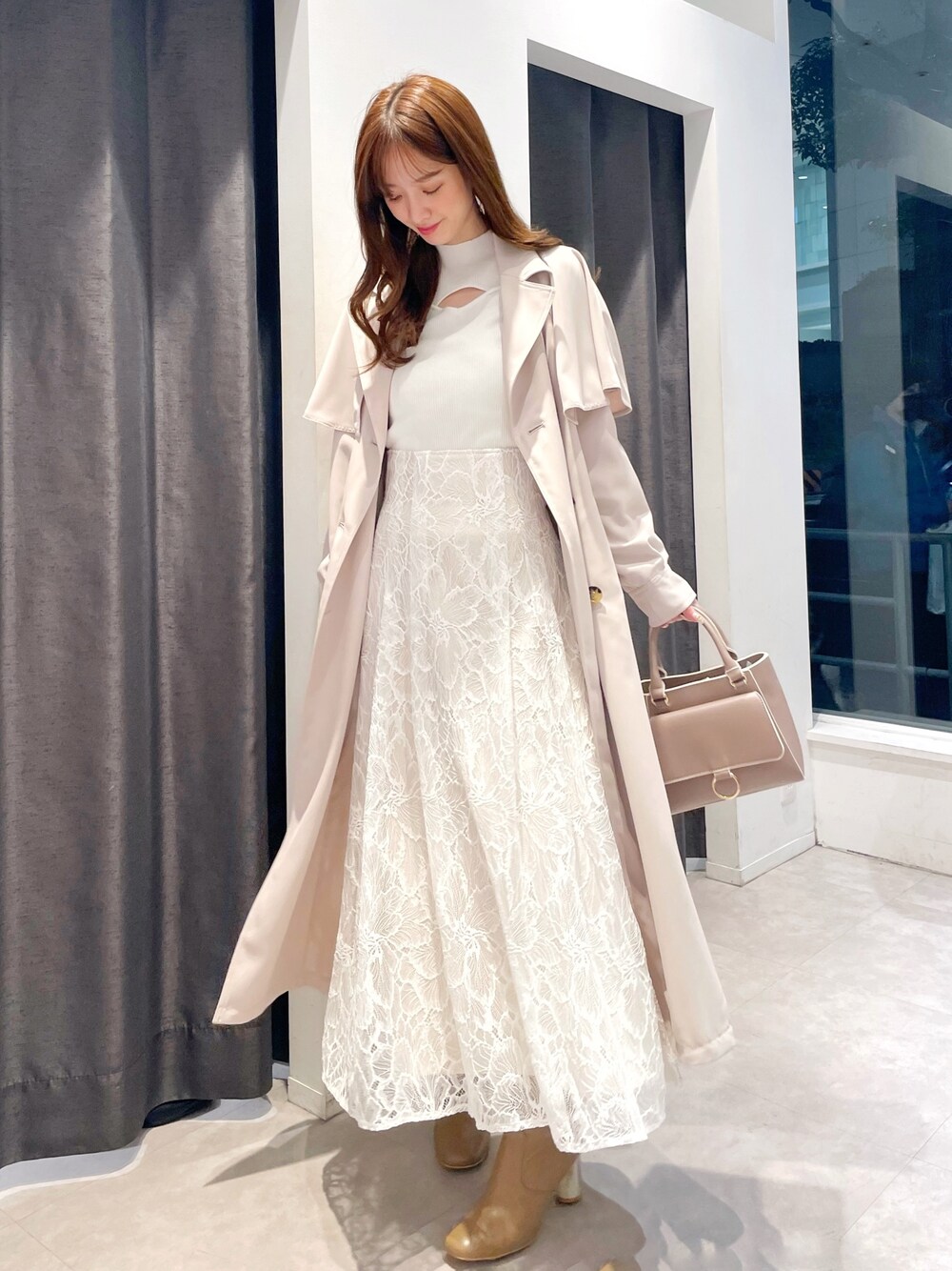 着るだけでオシャレ度がアップするレイヤード風ニットに、マーキュリーでは定番のレーススカートの合わせは白で統一させて、羽織には春コーデには欠かせないトレンチコートを合わせた王道デートコーデ🌸それぞれがシンプルなので着回し力も抜群です♡