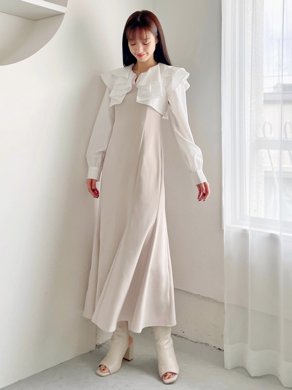 長澤 実果(MERCURYDUO)のワンピース「ボリュームラッフル配色ドッキングワンピース」を使ったコーディネート