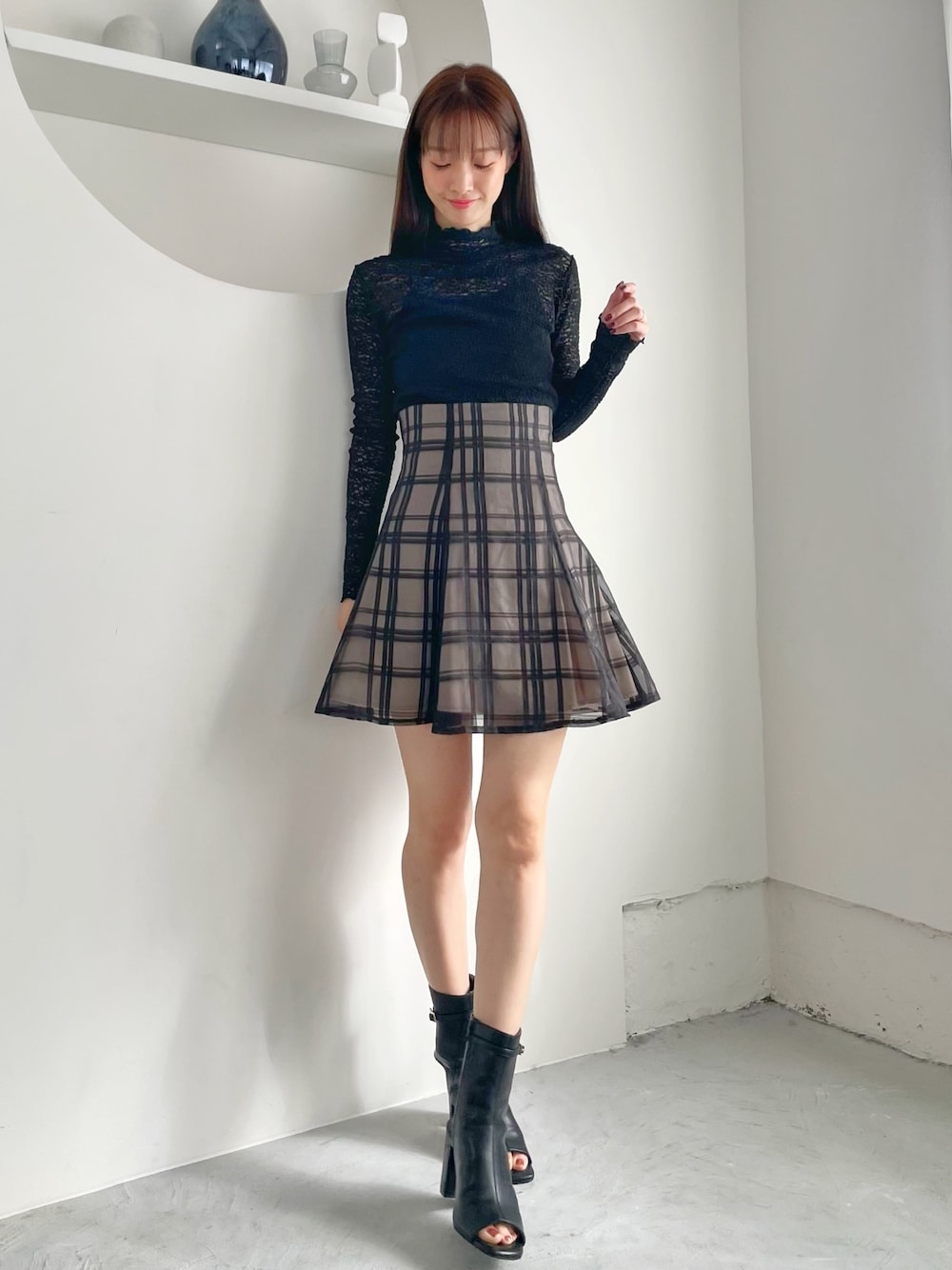 長澤 実果(MERCURYDUO)のその他パンツ「シアーチェックバックレースアップミニスカパン」を使ったコーディネート