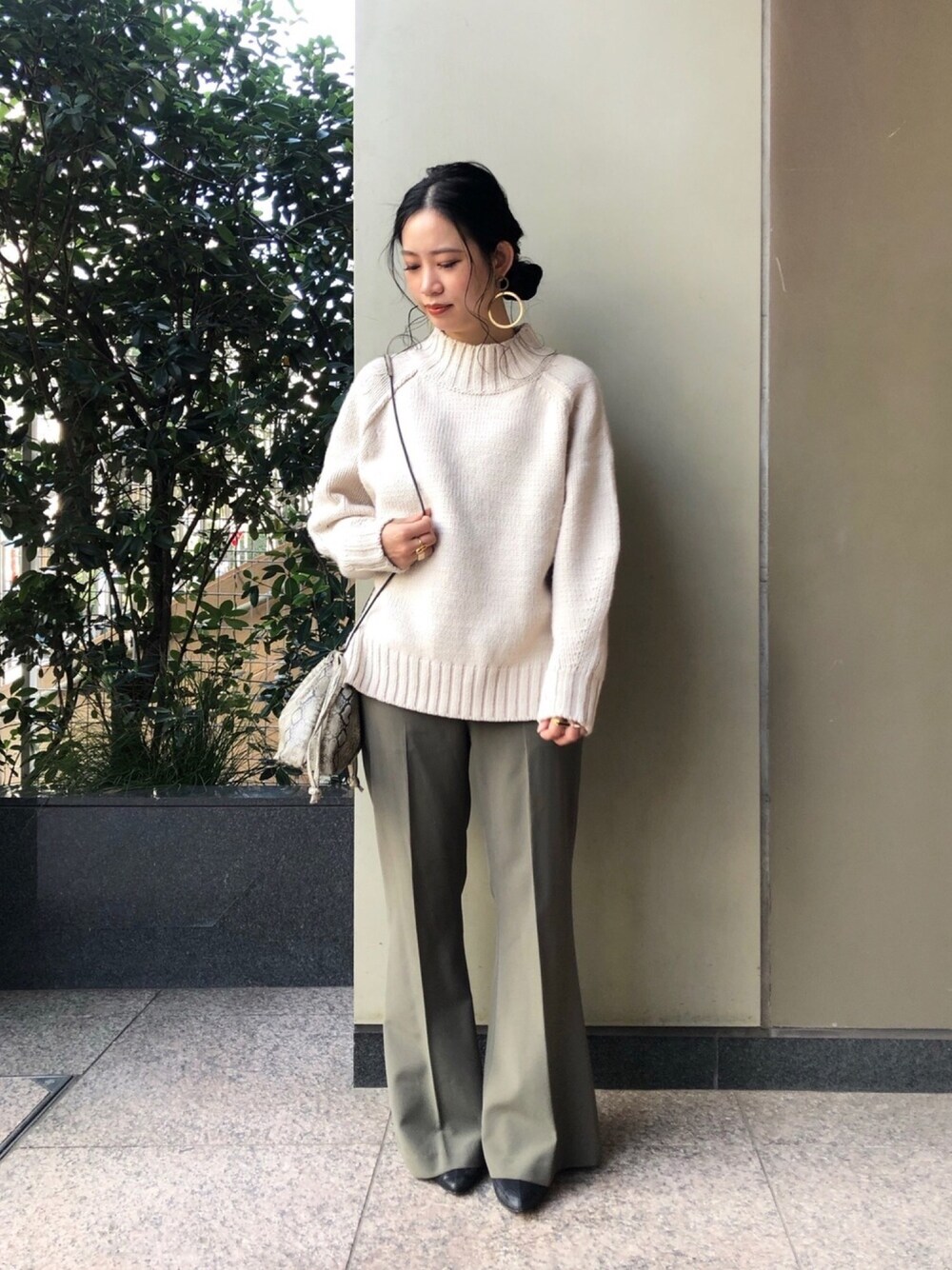 ベージュ×カーキで落ち着いた秋コーデに🍂フレアパンツでトレンド感🌟