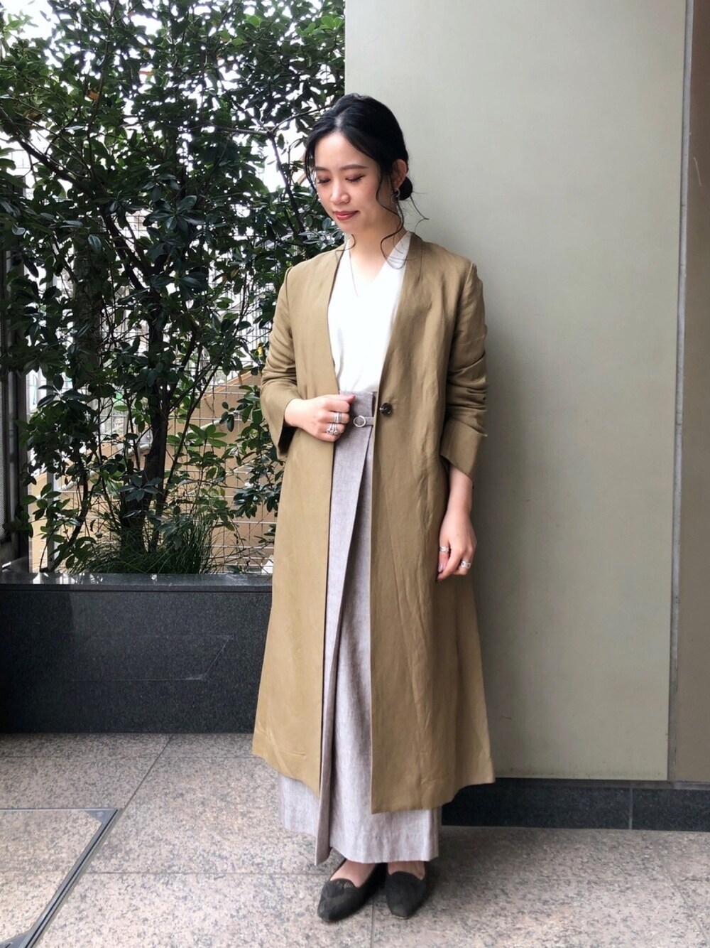 リネンのコートで春コーデ💐 タイトスカートで合わせて、ONにも使えるスタイリングに🤲