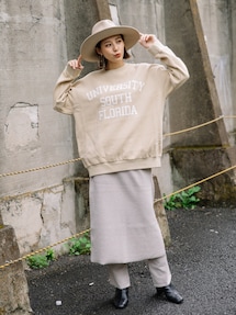 asakoのスウェット「カレッジプリント裏毛プルオーバー」を使ったコーディネート