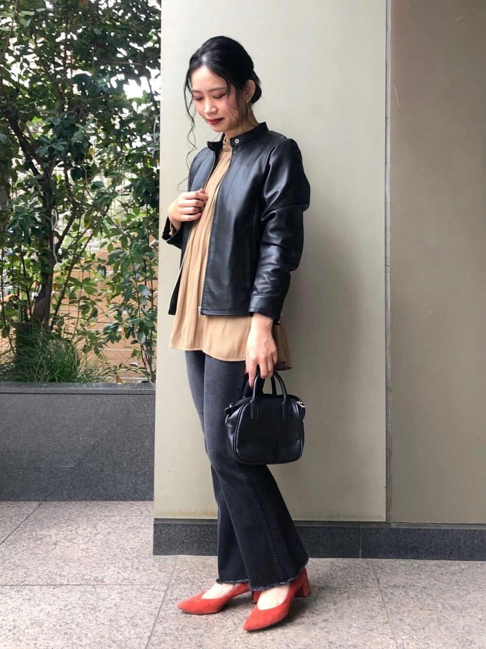 レザーブルゾンのきれいめコーデ😎 フレアデザインのデニムで、今年らしさを◎
