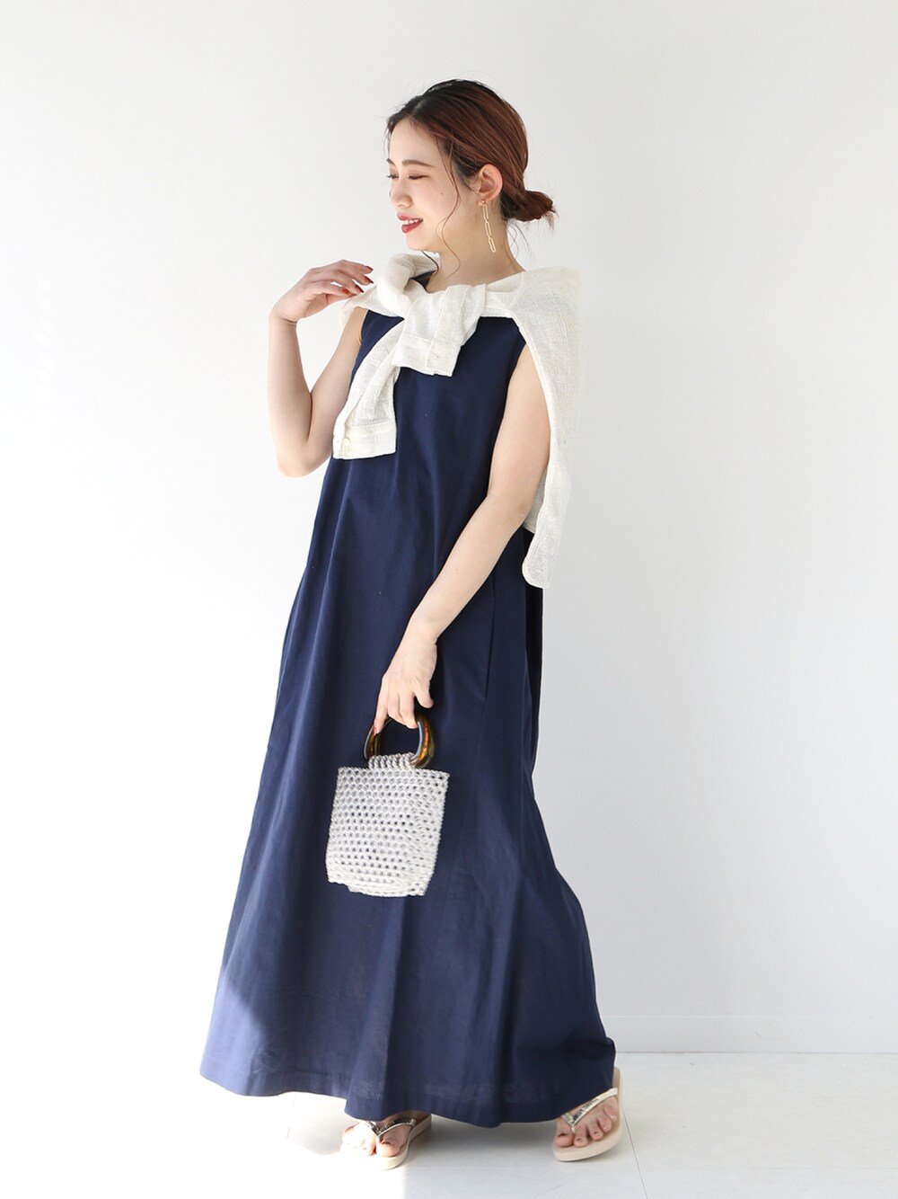 Aラインがキレイなワンピース 一枚で、高見えするラインのキレイなワンピース。麻綿の素材は、程よく張り感があるのでパリッとした印象に。通気性のある着心地の良い、シーズンライクな一枚に。ダークトーンも、ノースリーブなら軽い印象で着こなして頂けます◎