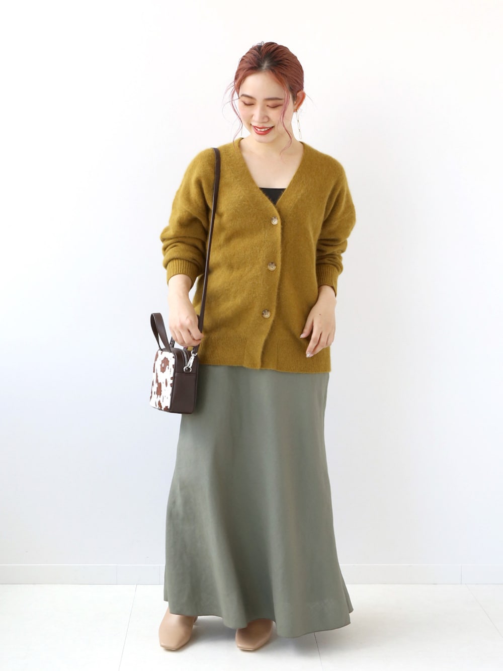 うかうかしてたら秋になってしまったので、新作ニットを。ふわふわとした獣毛混が軽くて暖かい着心地を実現してくれる、気持ちの良いニットカーデ。しなやかに体へ馴染む素材感なので、細身の方はより華奢な印象を演出してくれると思います。ボタンを開けて羽織にも、閉めてトップスとしても着まわせるので、着回し力も抜群の一着です🙋♀️
