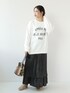 ほどよい厚さで秋はじめに着やすいトップス。カジュアルなロゴデザインですが、しつこくないデザインなのでキレイめなボトムスにも相性良く馴染んでくれます◎今回は、ひらひら揺れるプリーツスカートを合わせて、フェミニンさをプラスしてみました。ゆとりがあるので、中にブラウスやシャツをインしてレイヤードコーデにも◎秋から春まで長く着まわして頂けそうな一着です♩
